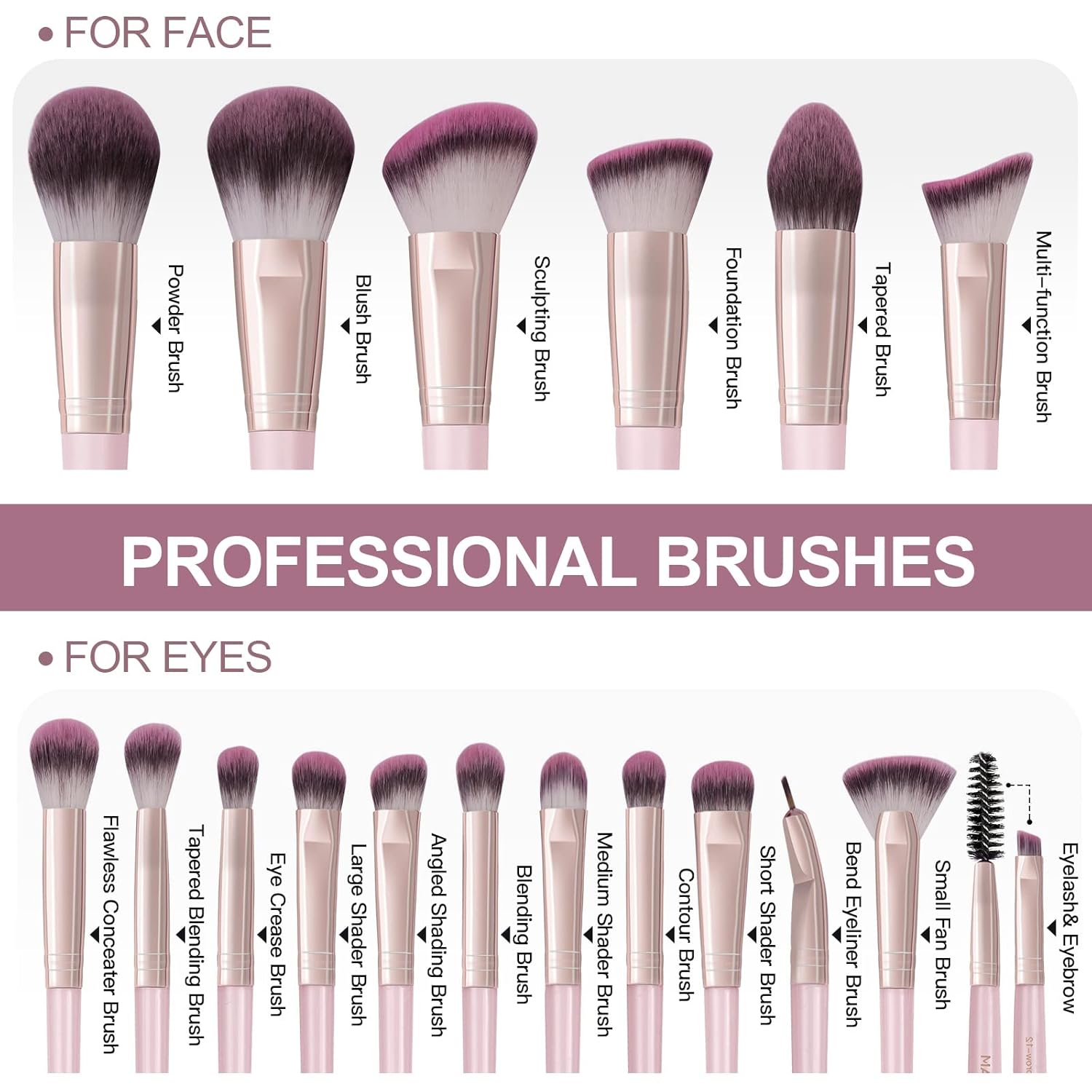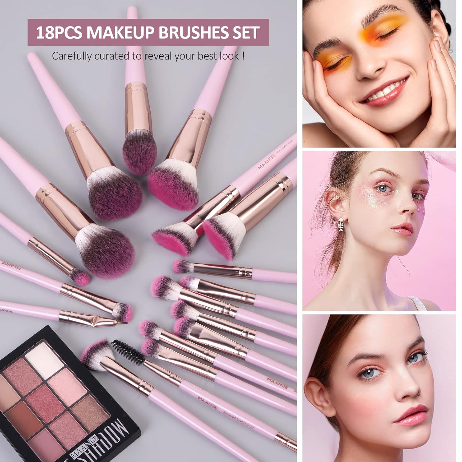 18-Piece Brush Collection:6 Pcs basic big Kabuki makeup brushes and 12 Pcs precise make up brushes.Perfect makeup brush kit for liquids
